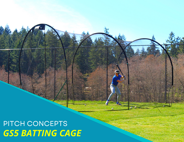 The Pitch Concepts GS5 Batting Cage will Revolutionize Backyard Baseball as you know it. Providing a Spacious Enclosure to Accommodate All Your Hits, the GS5 will help you say Goodbye to Lost Balls, Broken Windows and Angry Neighbors!